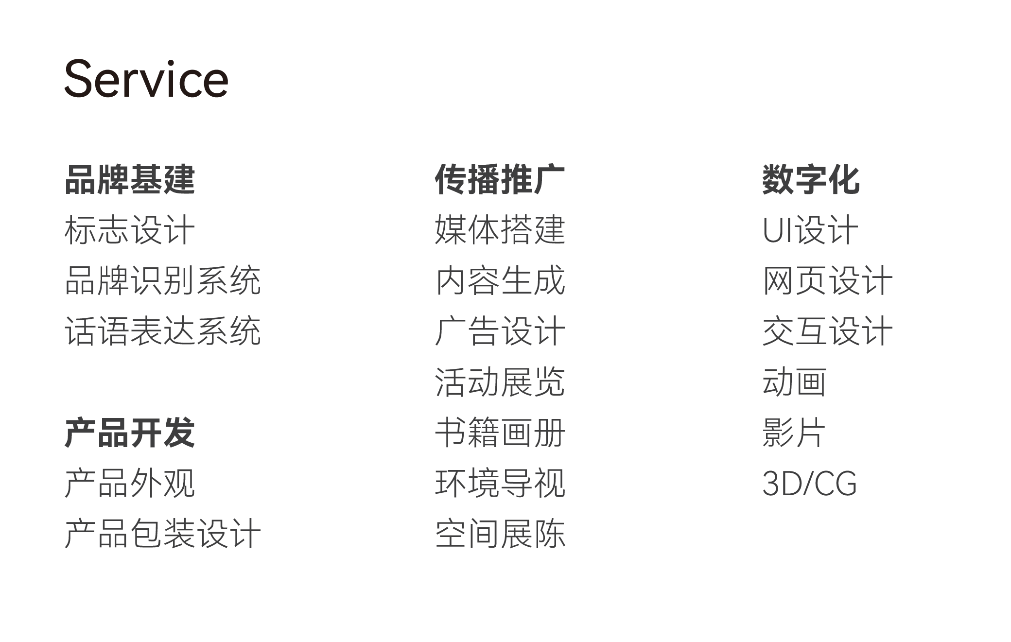 从深入洞察企业或品牌的现状与关键问题,针对性地提出切实有效的创意策略,并将其转化为恰当的视觉表达;再伴随品牌的成长持续改善和优化迭代。